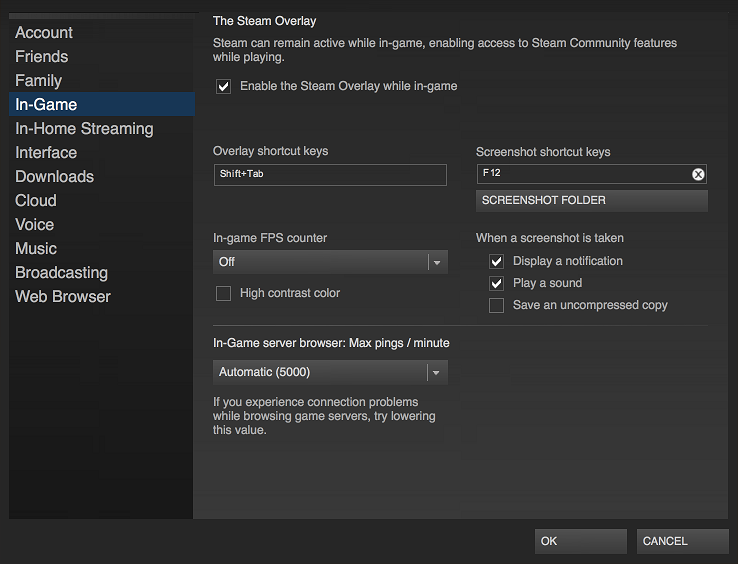 - Check the Enable the Steam Overlay while in-game checkbox.